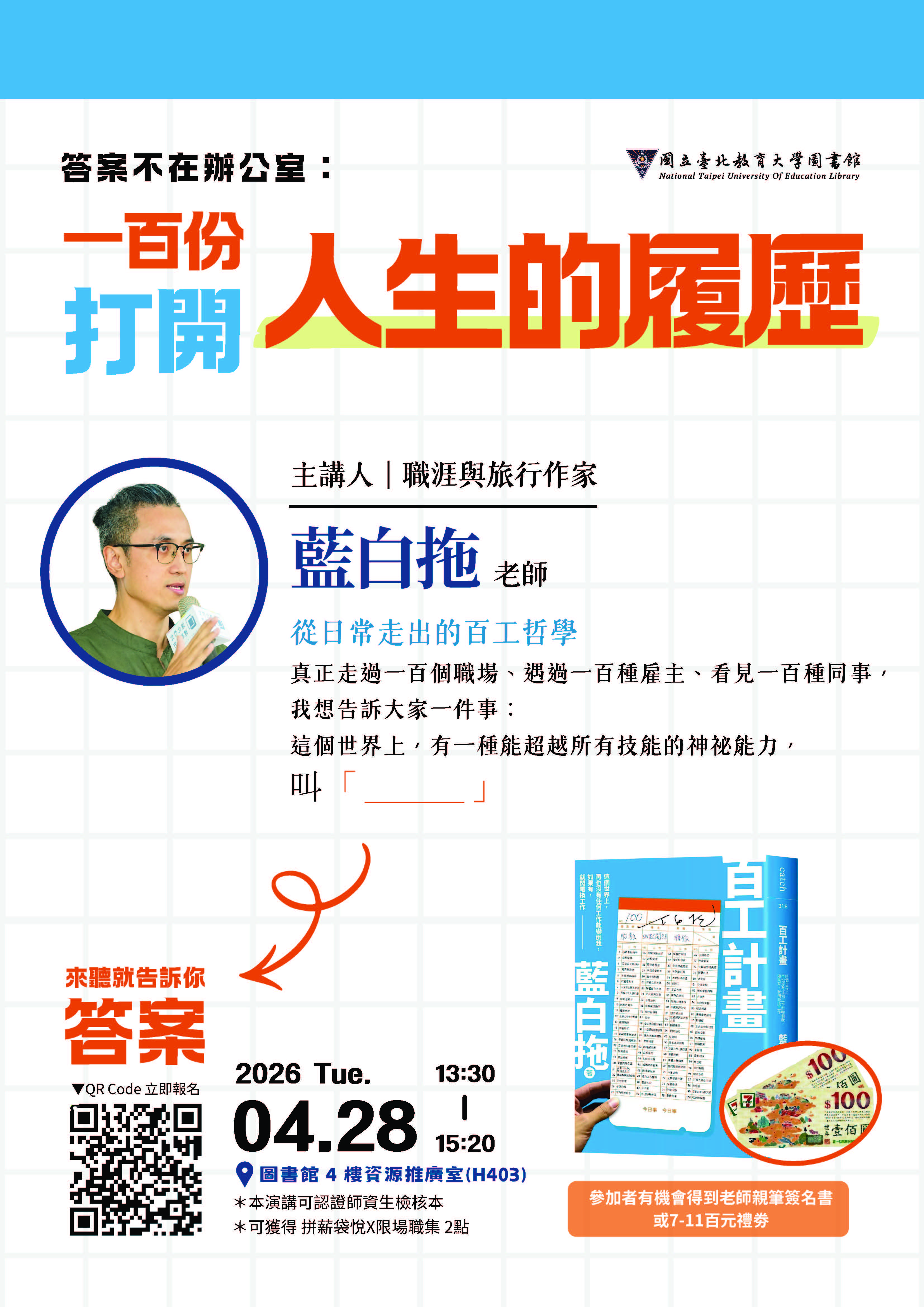 答案不在辦公室:一百份打開人生的履歷(海報) | 藍白拖 職涯作家 |